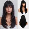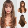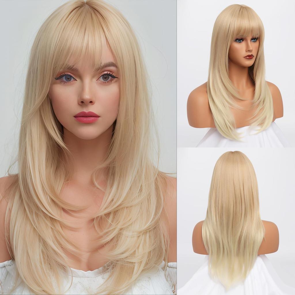 European American Gold Long Hair Wig Women's Bangs Straight Layered Full Head Hairstyle Synthetic Fiber