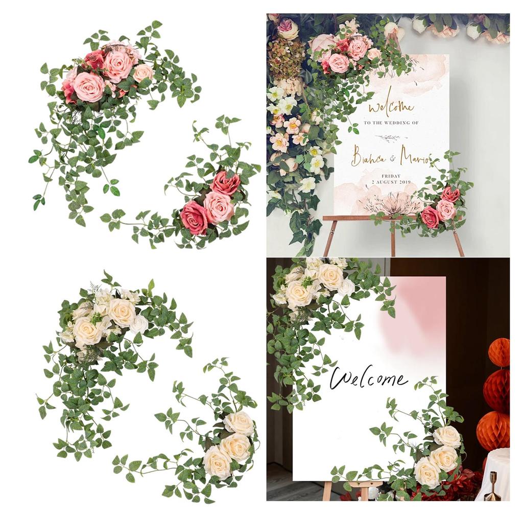 2Pcs Wedding Arch Flowers Welcome Signs Floral Swags Crafting Corner Row Backdrop Decor Garland Ornament for Party Entryway