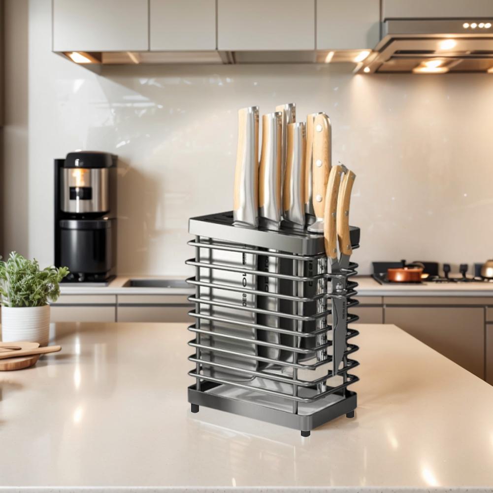 Stainless Steel Knife Holder Space Saving Kitchen Knives Stand Hollow Iron Wire Cutlery Display Organizer for Kitchen Countertop