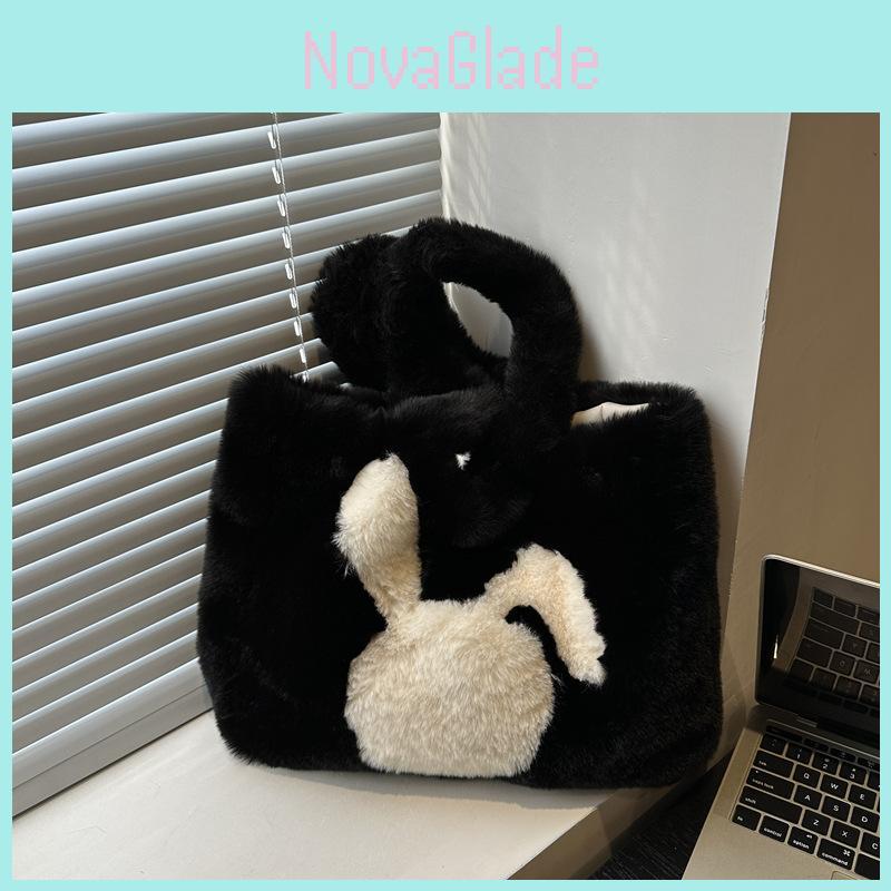 Adorable Plush Rabbit Tote Bag For Women Stylish Winter Large Capacity Shoulder Bag