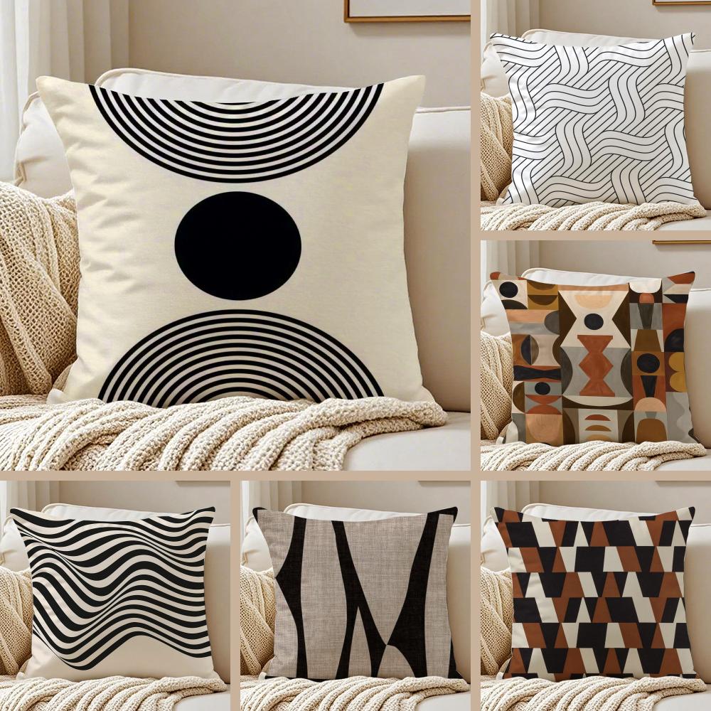 Reduced geometry Cushion Cover Pillowcase Antidustmite Invisible Zipper Short Plush Sofa Cushion