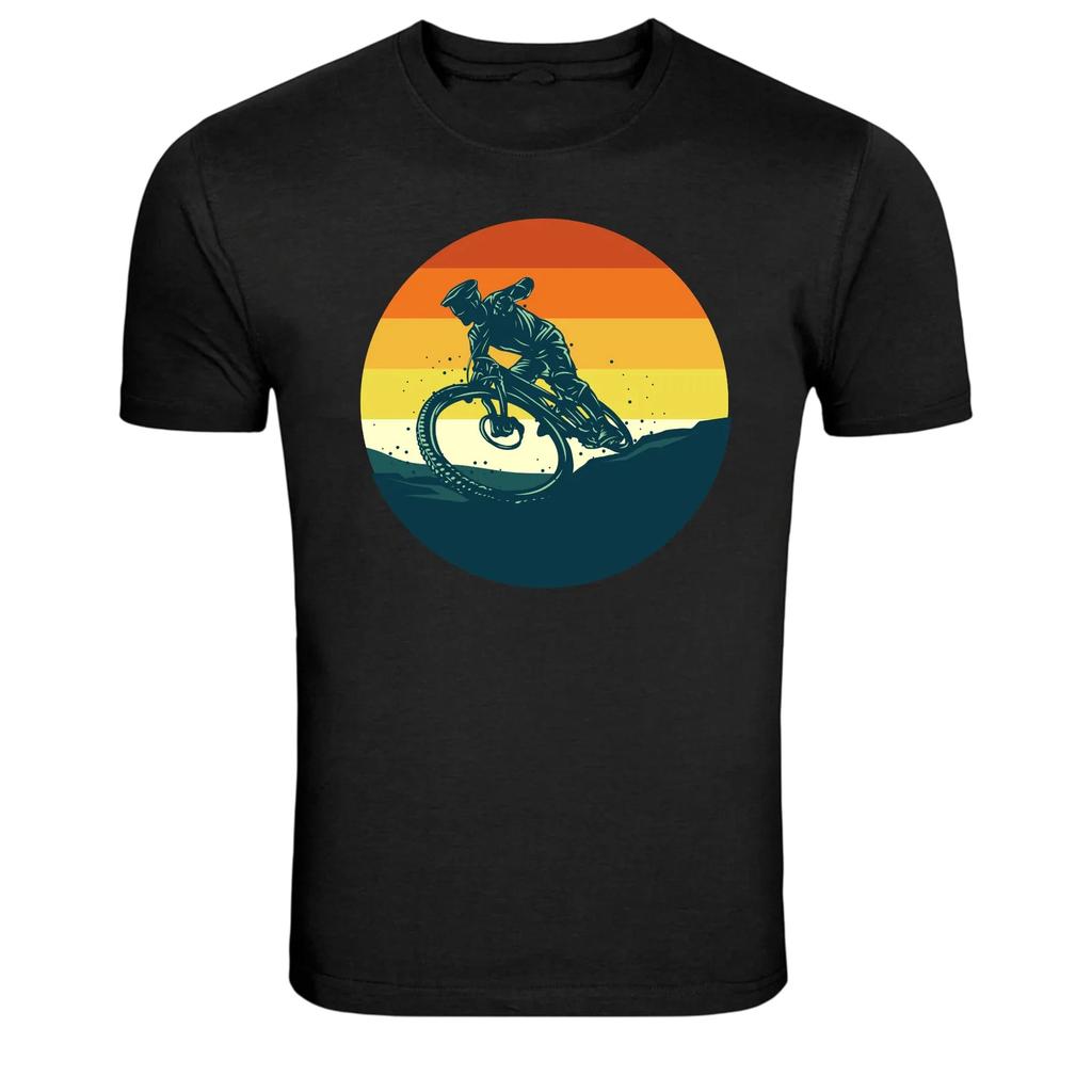 Retro Mountainbike Zonsondergang Grafisch T-shirt Fietsen Rijder Tee