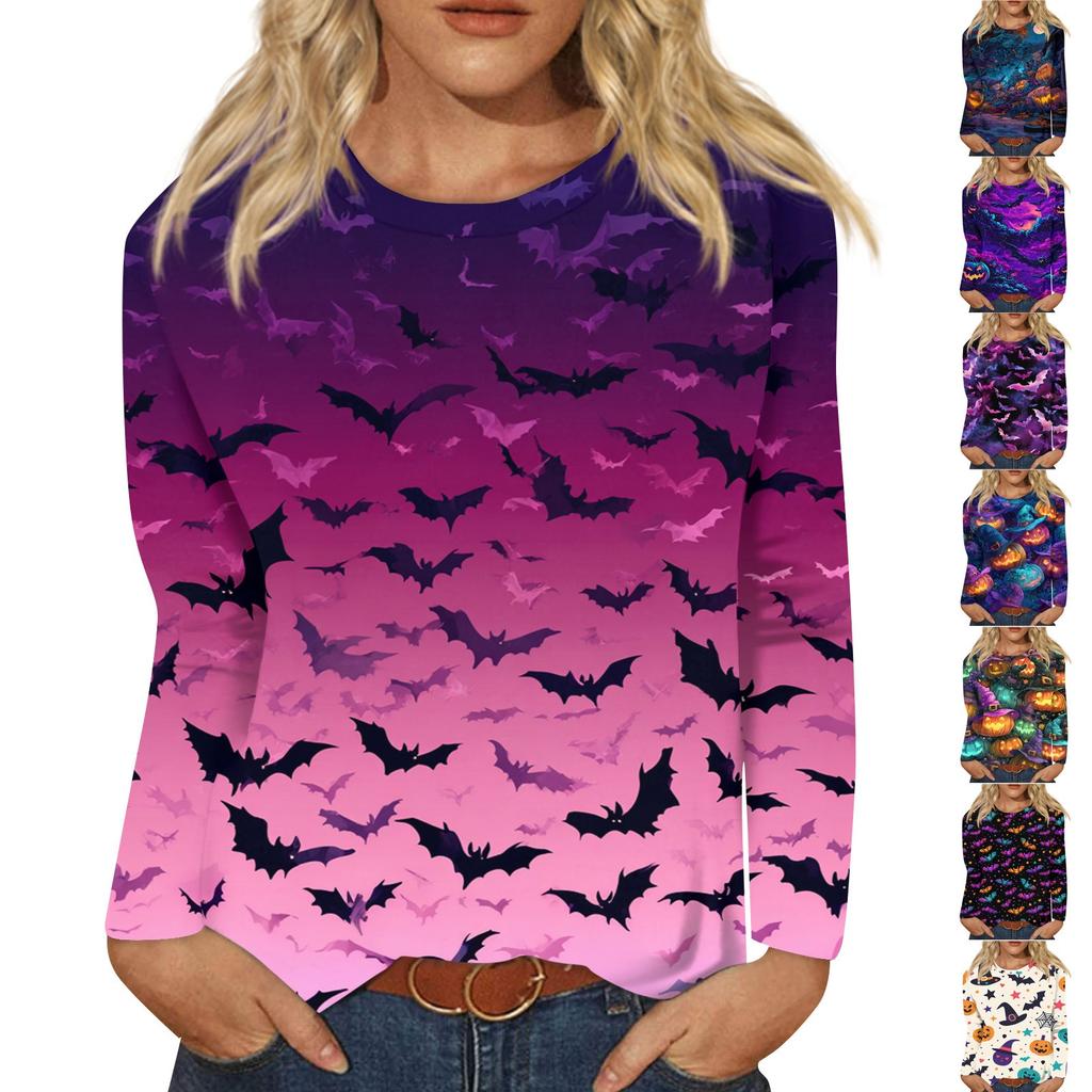 Dames casual top met lange mouwen en Halloweenprint, ronde hals. Beschrijving: 1. [Stof]: Hoogwaardig imitatiekatoen, ronde hals en lange mouwen. De stof is ademend, zeer comfortabel, voelt zacht aan en is prettig om de hele dag te dragen.. [Ontwerp]: Damesblouses, casual tops, losse pasvorm, comfortabel materiaal, geschikt als modieuze damesblouse voor werk, vakantie, strand, school, uitjes, feestjes, thuis en dagelijks gebruik.. [Overeenkomst]: Combineer met leggings, jasjes, jeans, cropped broeken, pantalons of rokken in de lente of zomer voor een elegantere en vrouwelijkere look.. [Maat]: De stof van dit product is elastisch, controleer daarom zorgvuldig uw maat en kies zorgvuldig voordat u tot aankoop overgaat.. [Reiniging en verzorging]: Het wordt aanbevolen om water met een temperatuur lager dan 30 graden Celsius of koud water te gebruiken om te wassen om vervaging te voorkomen. Er kunnen kleine kleurverschillen zijn tussen verschillende beeldschermen, houd hier alstublieft rekening mee. Productinformatie: Geslacht: Dames Gelegenheid: Casual materiaal: Polyester patroontype: Afdrukken : Casual lengte: Normale dikte lange mouwen: Standaard reinigingsmethode: Handwas in koud water, ophangen of aan de lijn laten drogen.: 1 Damestop