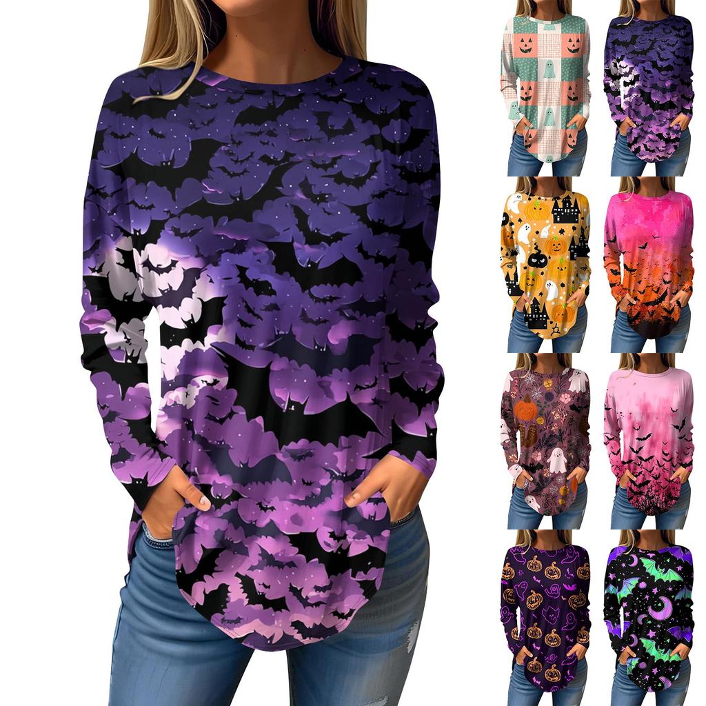 Damesmode Losse Ronde Hals Halloween Print Lange Mouwen T-shirt Top Pullover