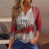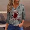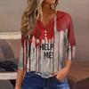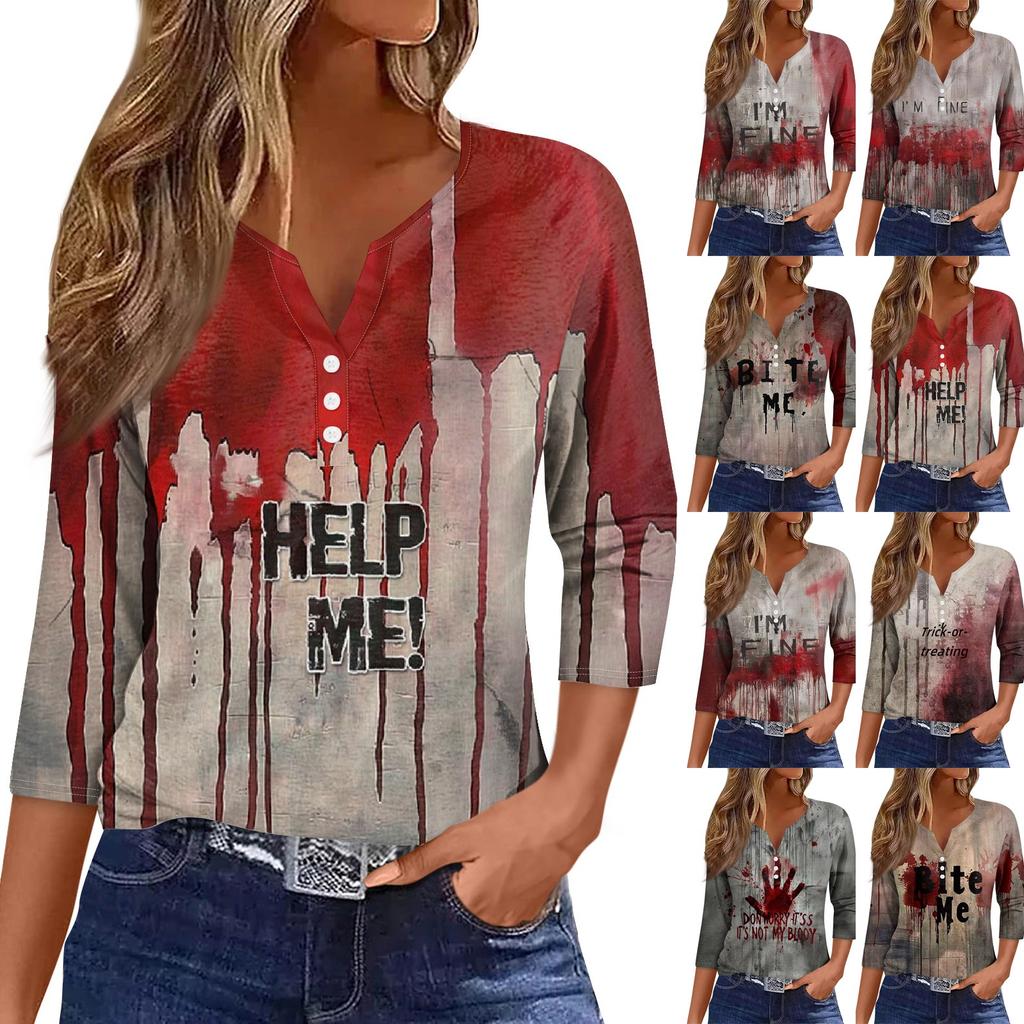 Damesmode Casual Halloween Print V-hals Korte Mouw Decoratieve Knop Driekwart Mouw T-shirt Top
