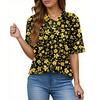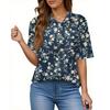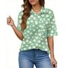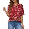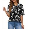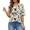 Women's Fashion Casual Button Pocket Shirt Short Sleeve Print Lapel Top