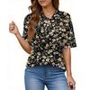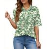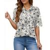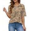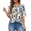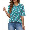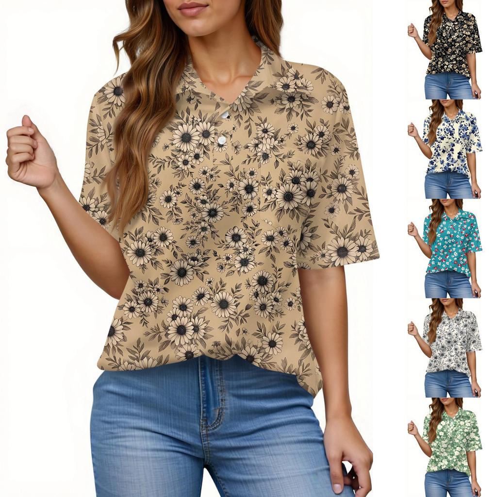 Women's Fashion Casual Button Pocket Shirt Short Sleeve Print Lapel Top