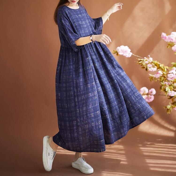 New Vintage Plaid Summer Dress Women Plus Size Casual Oversize Loose Basic Dress
