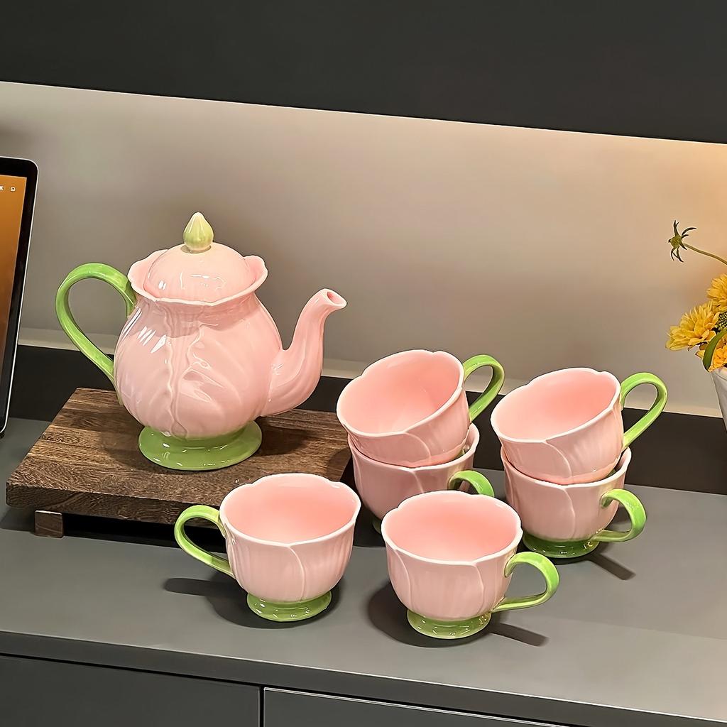 Tulip Tea Set Ceramic Teapot Flower Tea Cup Coffee Mug Tableware Milk Mug Teacup Cups Teapot English British Teaware Set