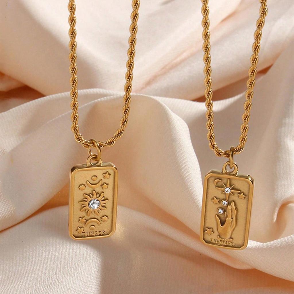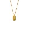 Stainless Steel Sun Square Pendant Necklace with 3D Embossed Diamond Inlay