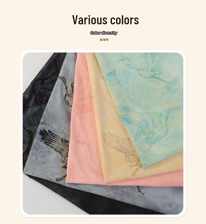 IJszijde Kraanvogel Bloemen Tie-Dye Etnische Stof voor Lente/Zomer Rokken & Danskleding