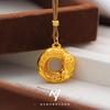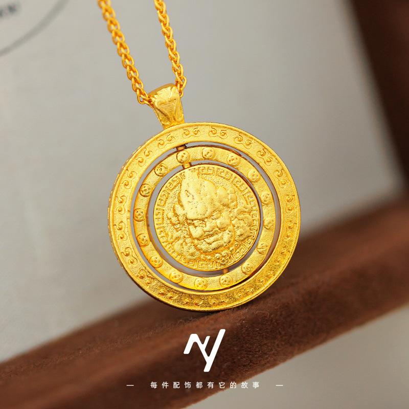 Luxury 24K 9999 Pure Gold real gold Women's Rotatable Three-Circle Yellow God of Wealth Pendant Rotatable Pendant Necklace