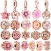 Sparkling Rose Gold Original Flower Charm Pink Daisy Flower Cherry Blossom Rose Flower Beads Fit Snake Bracelet DIY Jewelry Gift