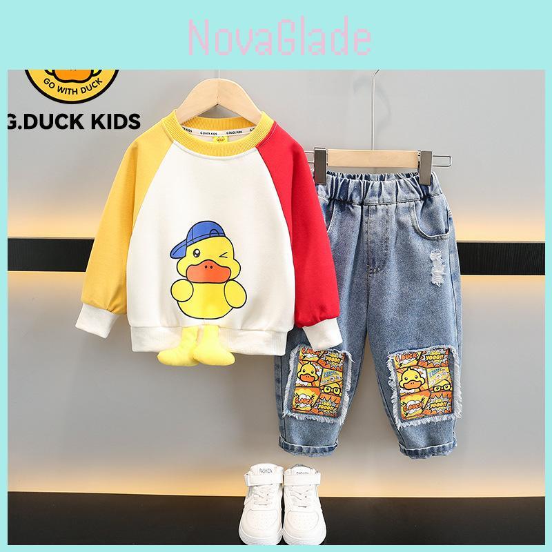 Trendy Little Yellow Duck Boys Spring Autumn Hoodie Outfit Set For Kids Sizes 3 To 8