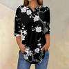 Damestops met 3/4 mouwen, zomerse T-shirts met bloemenprint, V-hals, casual basic T-shirt met knoopsluiting, tuniektops