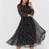 EastRogue Women's Fashion Summer Spring Polka Dot Print Long Sleeve O-Neck High Waist Casual Dresses