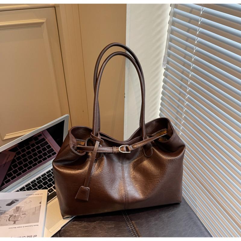 PU Solid Color Large Capacity Shoulder Bags Hasp Sewing Women's Bags 2026 Temperament Versatile Women's Handbags