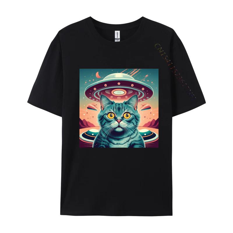 Elegant Cat Selfie Ufo Tshirt High Quality Men T Shirt Cosie Tops Shirt Unique Printed Funky Tshirt