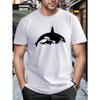 Plus Size Men's T-Shirt with Whale Print - Casual, Breathable , Round Neck, Short Sleeve - Perfect for Summer, PLUS SIZE