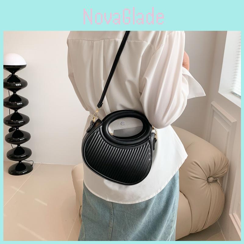 Chic Trendy Women's Round Crossbody Bag In Black White Pink Green Magenta Pu Material