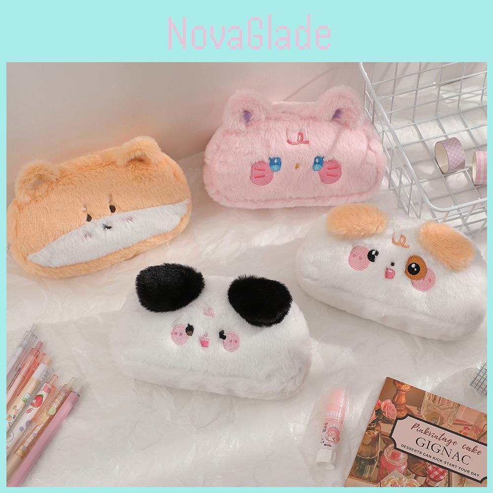 Fw126 Cartoon Plush Storage Bag For Girls Diy Journal Material Organizer Portable Pencil Case Wholesale