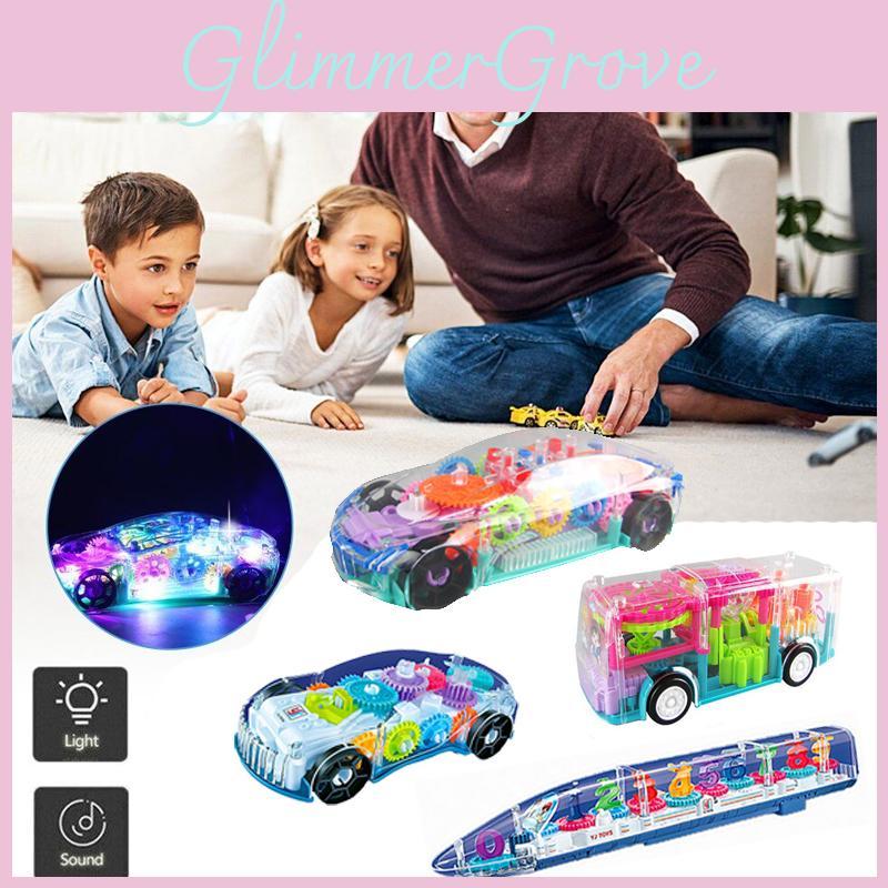 Electric Transparent Gear Led Light Music Car Model For Kids' Educational Toy Gift