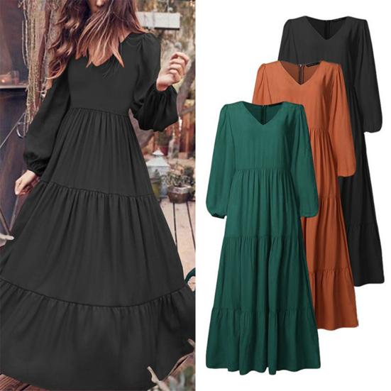 Elegant ontwerp met V-hals: De effen jurk heeft een flatterende V-halslijn die een vleugje verfijning aan uw look toevoegt, waardoor hij perfect is voor diverse gelegenheden, van dagelijkse kleding tot speciale evenementen.