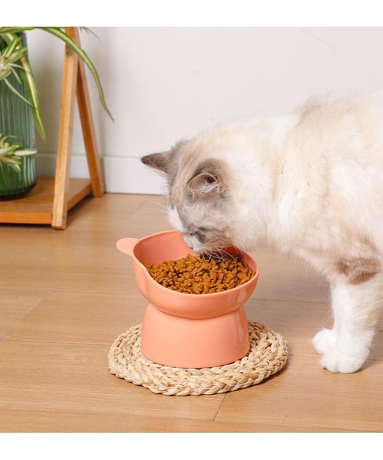 1pc dog bowl, cat bowl, neck protection, cat food bowl, tilted high footed cat bowl, cartoon anti spill pet bowl