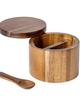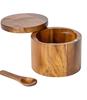 Wooden Seasoning Jar Pepper Salt Shaker Seasoning Box Large Capacity Pepper Box with Spoon Magnetic Rotating Lid Kitchen Storage