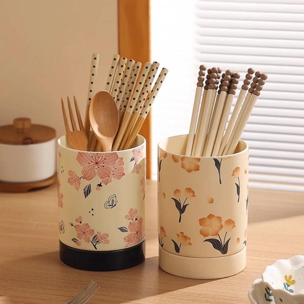 Vintage Ceramic Chopstick Holder Household Chopstick Storage Box with Draining Water Chopstick Spoon Holder Kitchens Accessories