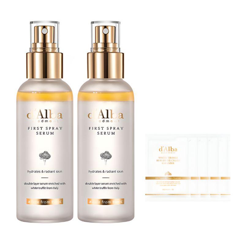 A luxurious dual serum mist set infused with premium White Truffle extract to deliver instant hydration, nourishment, and radiant glow. The d’Alba White Truffle First Spray Serum provides a fine mist that evenly coats the skin, helping to improve elasticity and restore moisture balance. Perfect for use anytime, anywhere, this versatile serum can be used as a toner, essence, or setting spray. The set also includes mild acidic gel cleanser samples for gentle daily cleansing, making it ideal for complete skincare care.