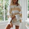 Autumn and Winter Women's Sweater, Women's Rolled Edge Round Neck Striped Color Blocked Knit Sweater