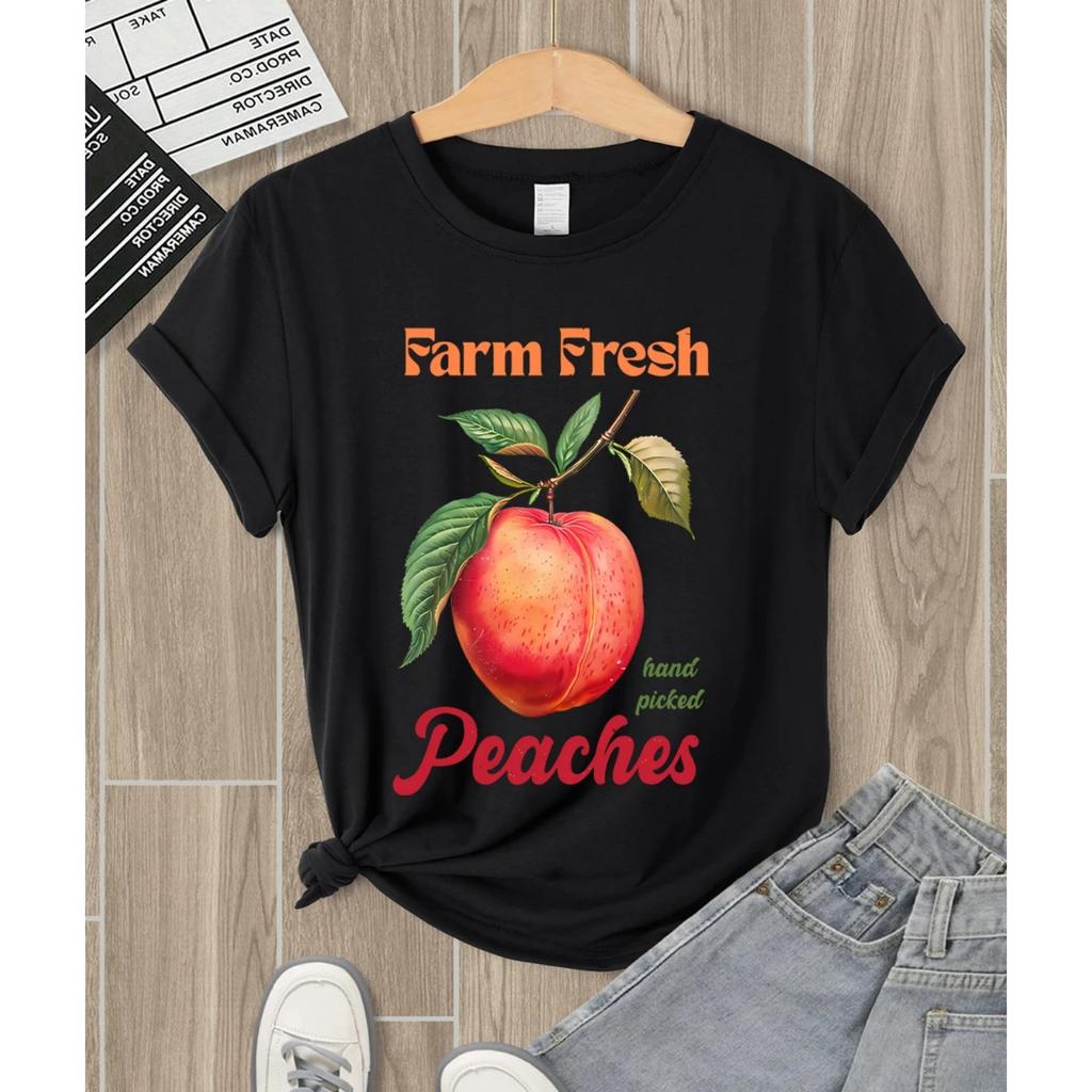 Farm Fresh Hand Picked Peaches Print Women T Shirts All-Match Soft T-Shirt Crewneck Y2K Clothing Summer Multicolor Short Sleeve