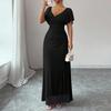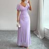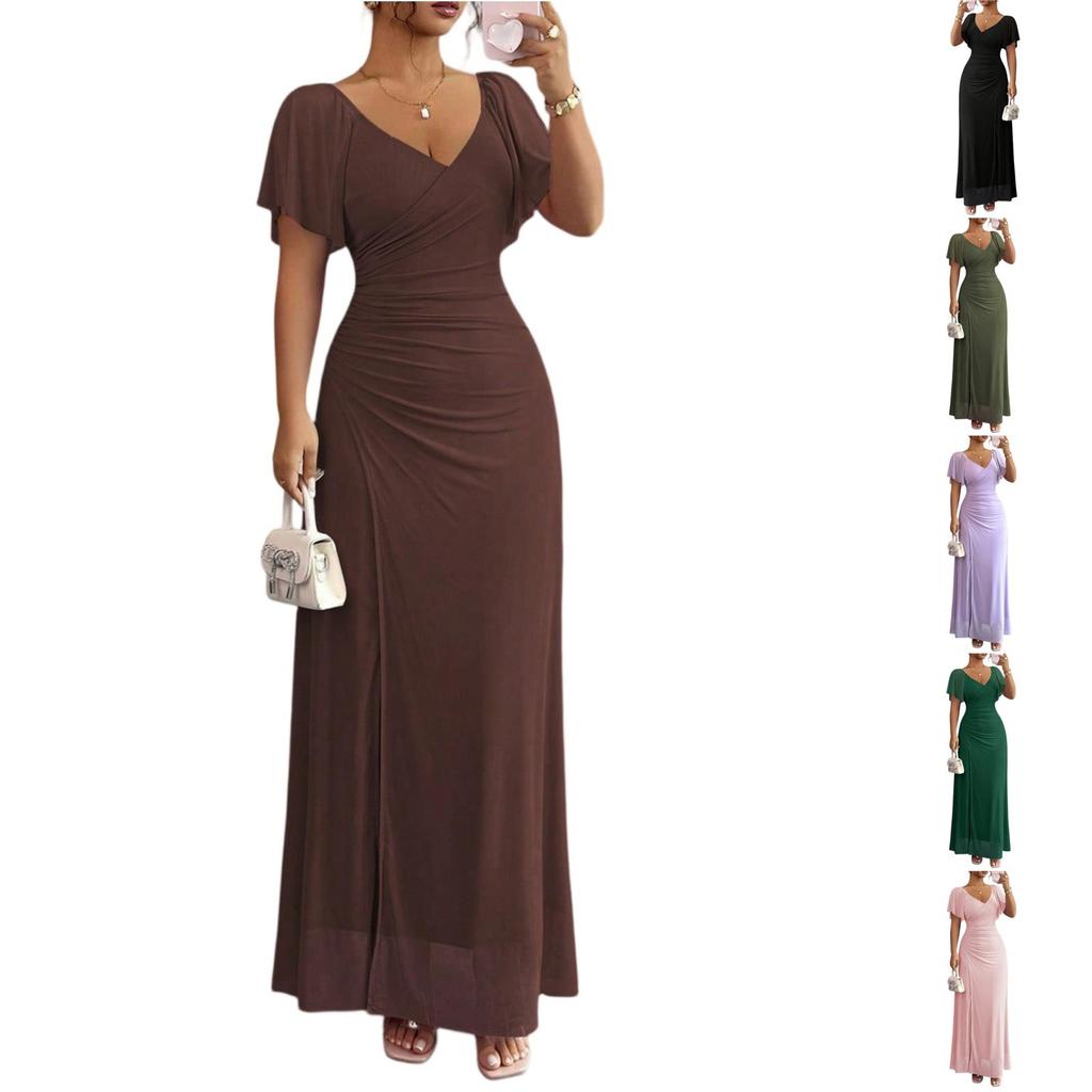 Damesmode V-hals Vliegende Mouw Split Avondjurk Jurk