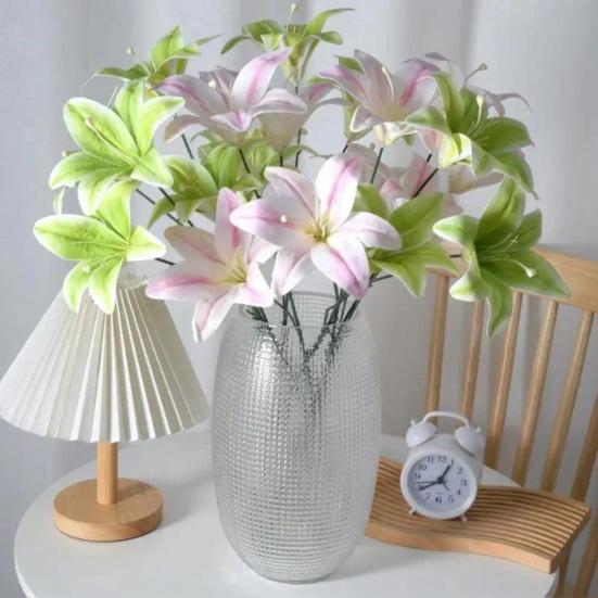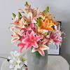 Artifical Lily Flowers with 3 Heads Full Bloom Real Touch Long Stem Fake Lily Bouquet for Home Hotel Flower Arrangement Wedding Party Decor