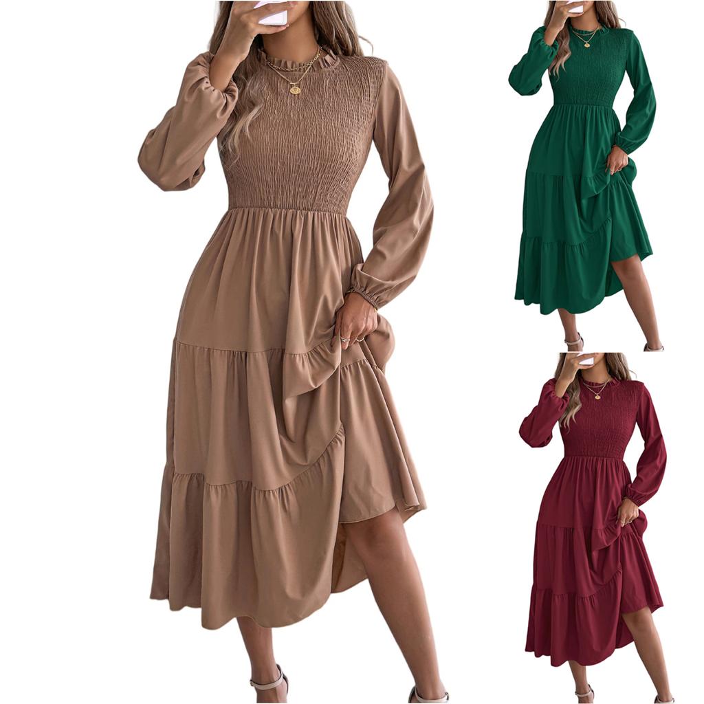 Modieuze, kleurrijke, ronde halsjurk met lange mouwen en een losvallende pasvorm voor dames.