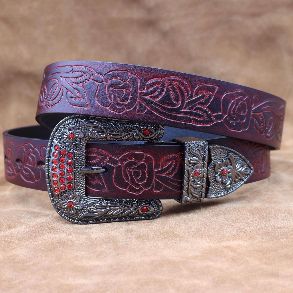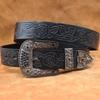 Western Embossed Cowhide Leather Belt - Retro Pin Buckle Men's Genuine Leather Belt for Trendy Young Men.