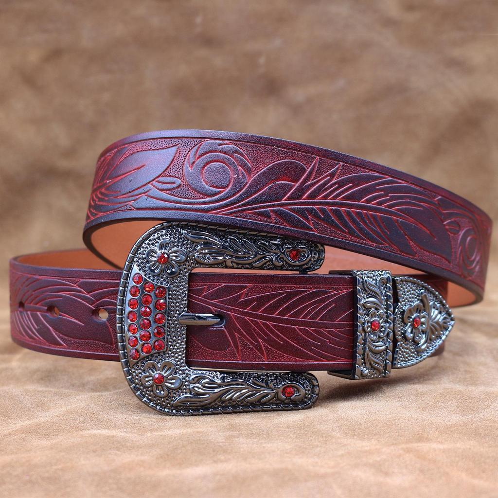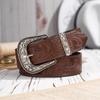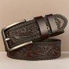 Men's Western Buckle Genuine Cowhide Leather Belt, Thick and Embossed for a Fashionable Look