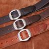 Men's Genuine Cowhide Leather Retro Western Embossed Pin Buckle Belt
