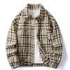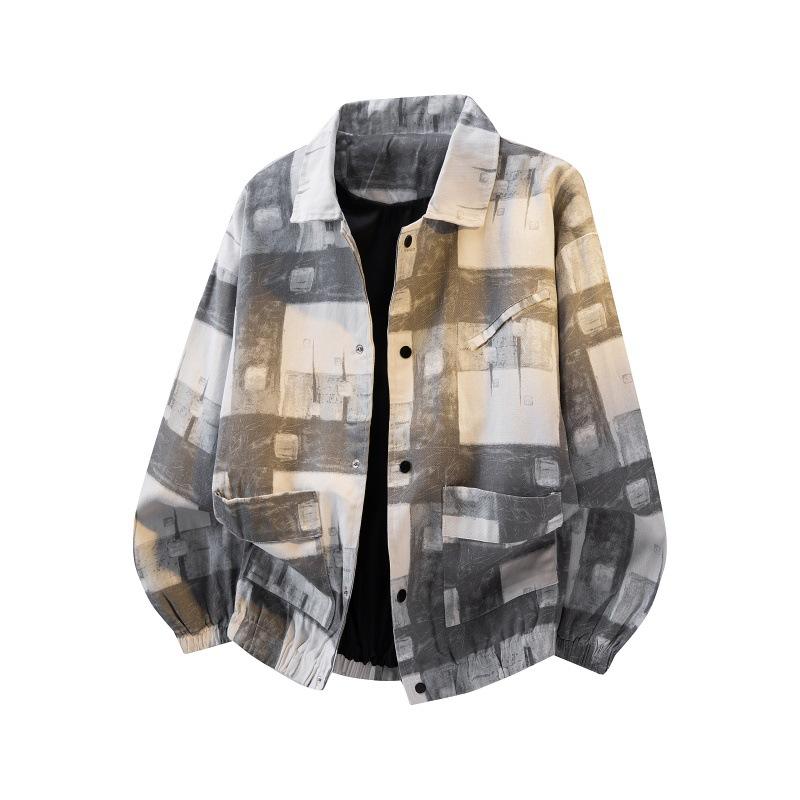 Men's Abstract Plaid Print Jacket Turn-Down Collar Button Down Oversized Streetwear Coat