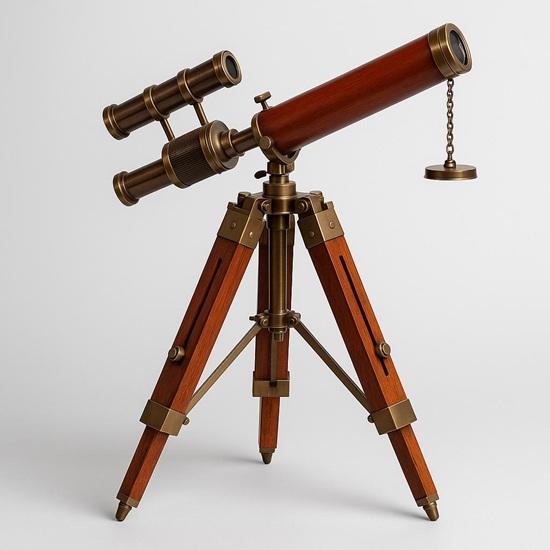 Brass telescope décor, telescope with tripod, nautical telescope showpiece, brass telescope, maritime desk décor, wooden tripod telescope, home office decoration, nautical gift item, desk showpiece, collectible brass telescope, unique wedding gift, anniversary gift décor, Christmas gift ideas, nautical décor item