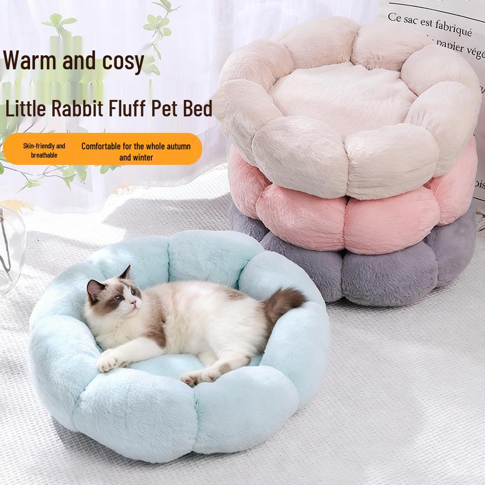 All-Season Plush Flower Pet Bed for Cats, Dogs & Rabbits
