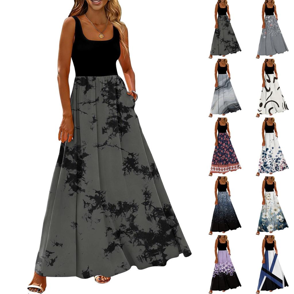 Dames zomerse casual en modieuze mouwloze lange jurk met bloemenprint