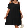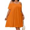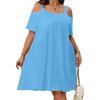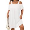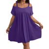 Women's Summer Off Shoulder Mini Dress Short Sleeve Flowy A-line Dress Casual Loose Beach Vacation Sundress