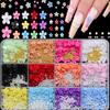 12 Grids/box Colorful Mini Flower Nail Charms 3D Acrylic Floral Nail Art With Pearls Golden Silvery Nail Beads Nail Decoration For Manicures