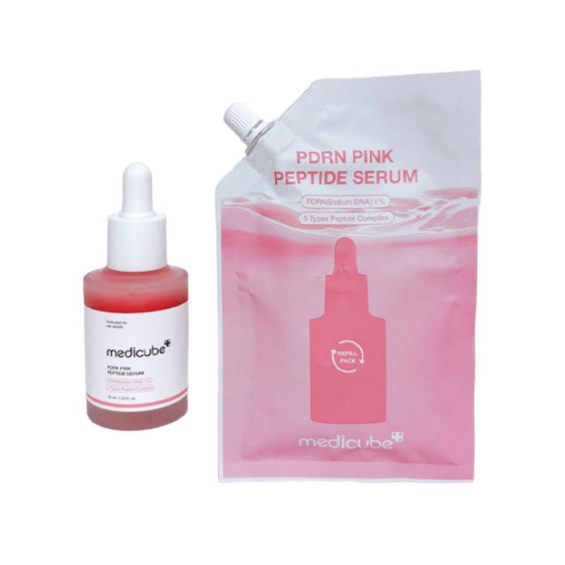 Unlock the secret to skin regeneration with the Medicube PDRN Pink Peptide Ampoule. This intensive repair serum features high-purity Salmon PDRN, a powerful DNA-derived ingredient known for its exceptional ability to revitalize tired, damaged skin and fade post-blemish marks. Formulated with a unique Pink Peptide Complex, it strengthens the skin barrier and improves elasticity from the inside out. The vibrant pink hue is naturally derived from Vitamin B12, providing a fresh, glowing finish without artificial pigments. This special value set includes a 30ml dropper bottle and a 50ml refill (Total 80ml), ensuring a long-lasting supply for your daily anti-aging and skin-clearing routine.