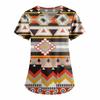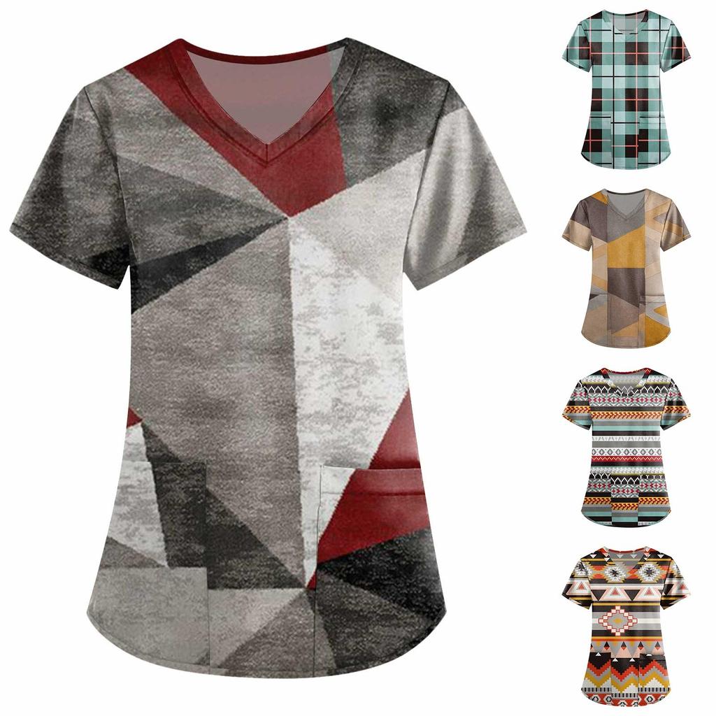 Damesmode werkkleding met V-hals, korte mouwen en bedrukte zakken