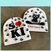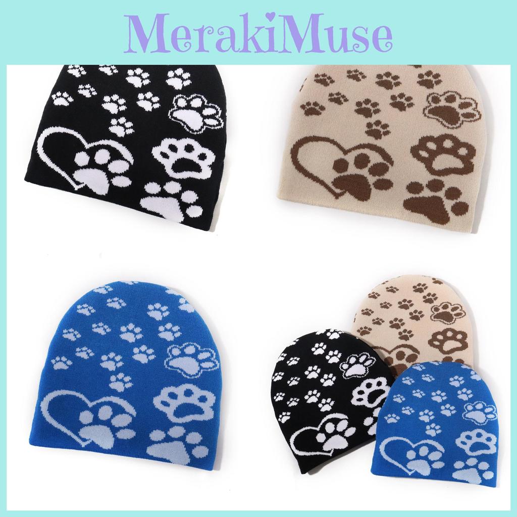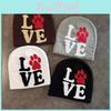 Acrylic Knitted Cap Featuring Paw Print Pattern For Autumn Winter Sports And Daily Use