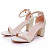 7cm Thick Heel Shallow Mouth One-strip Sandals Round Toe Square Root Sandals White Pearl Wedding Shoes Large Size 44 Size 45