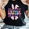 Rabbit Ears Easter Day Letter Print T-shirt Short Sleeve Crew Neck Casual Top For Summer Spring Women's Clothing